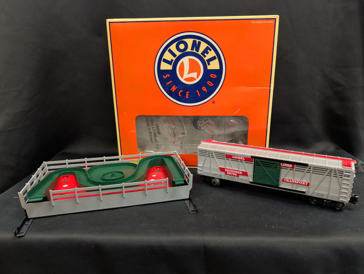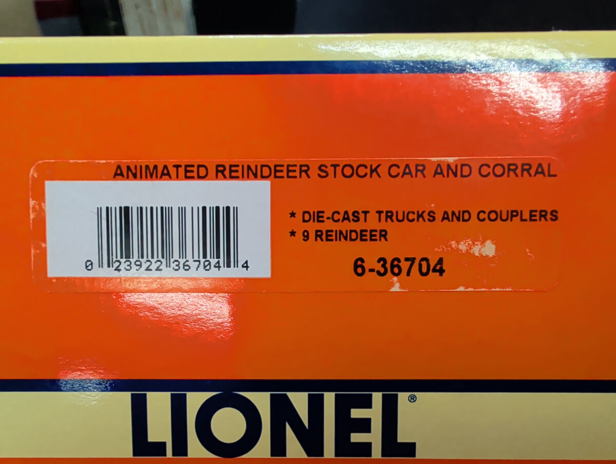 Lionel Animated Reindeer Stock Car and Corral, Die-cast trucks and couplers with 9 Reindeer, product number 6-36704.